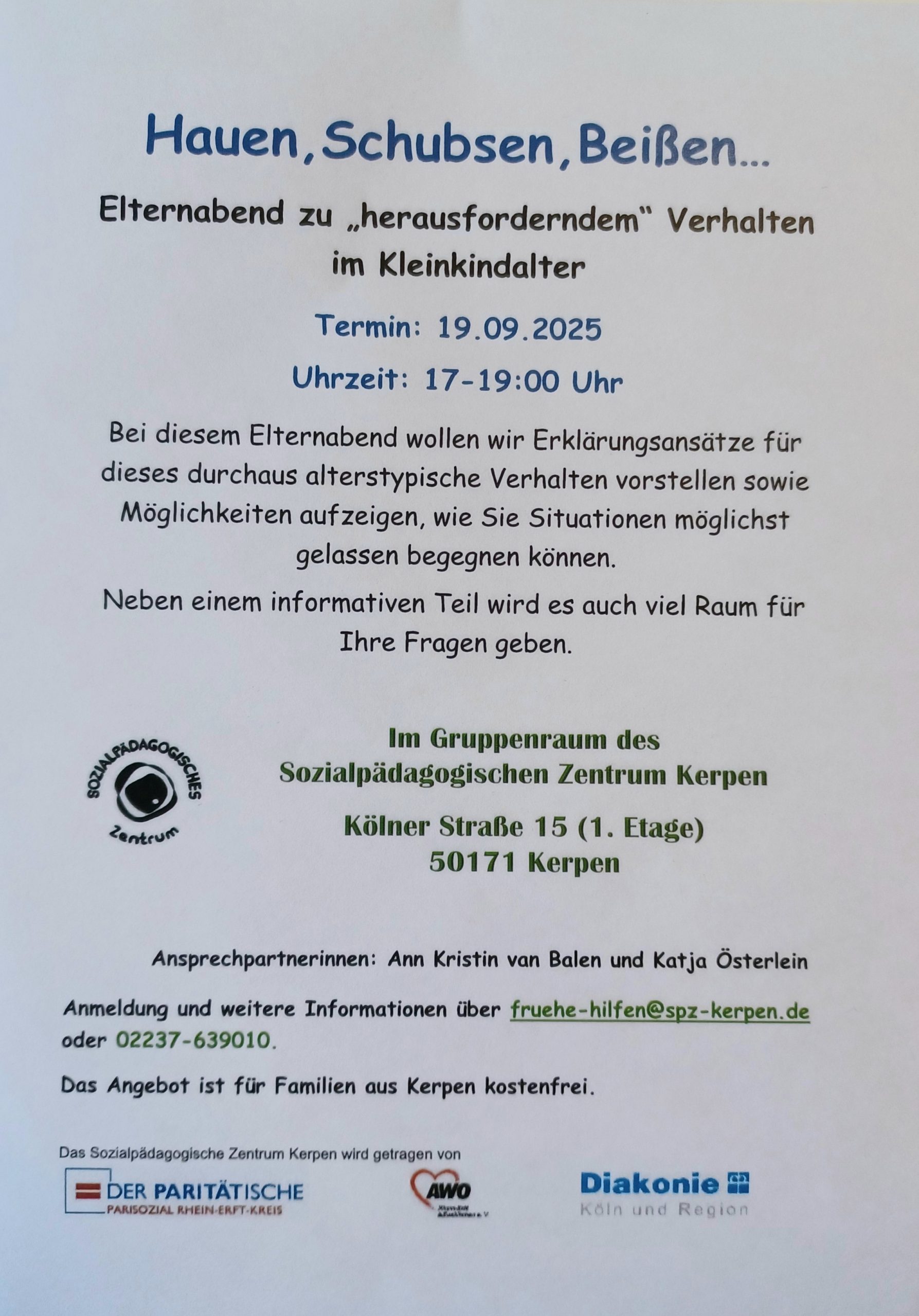 Elternabend Hauen, Schubsen, Beißen @ SPZ Kerpen
